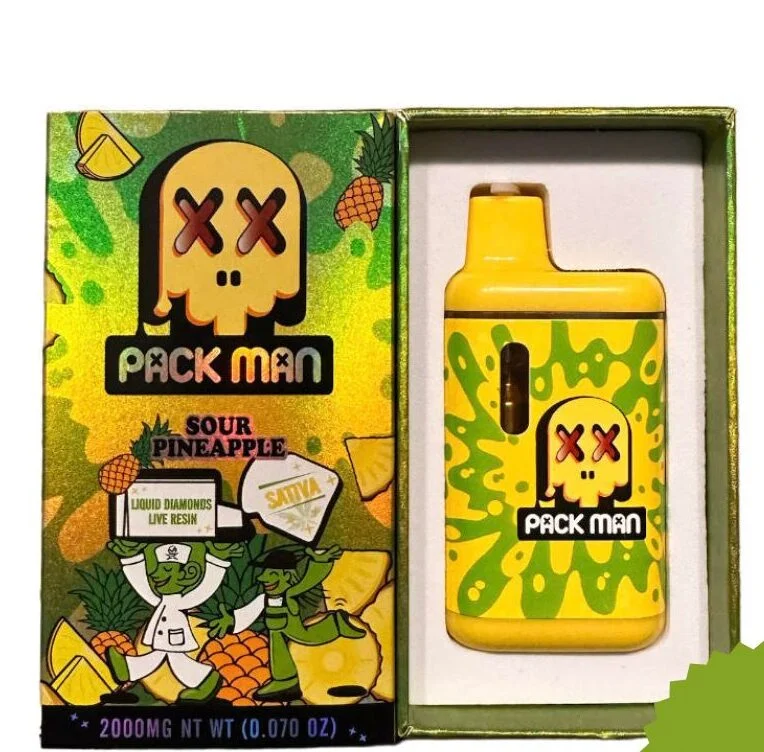 Packman Sour Pineapple 2g Disposable Vape to gotowy do użycia waporyzator THC w formie pena, wstępnie napełniony około 2 gramami ekstraktu z konopi, który zazwyczaj oferuje wysoki poziom THC, rzędu 85–94% – dla silnych i długotrwałych efektów z każdym zaciągnięciem.